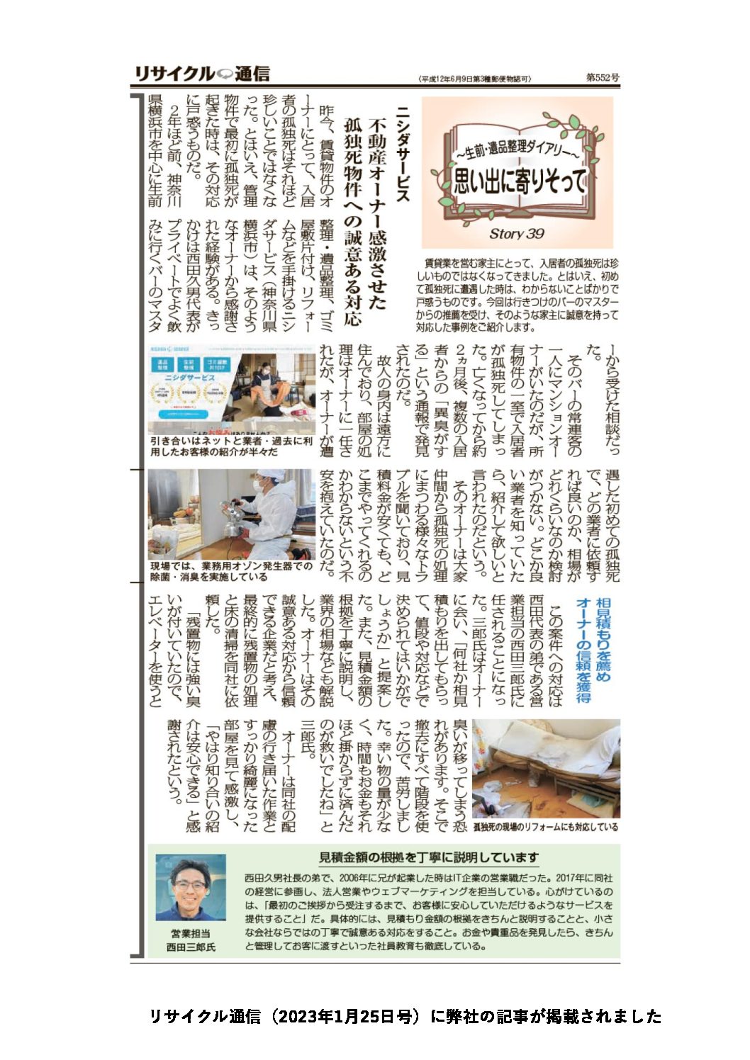 「リサイクル通信に掲載されました!」孤独死物件の遺品整理のご依頼