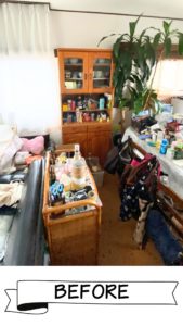 アパートのお部屋は、物が重なり合い、生活が難しい状態になっていました。